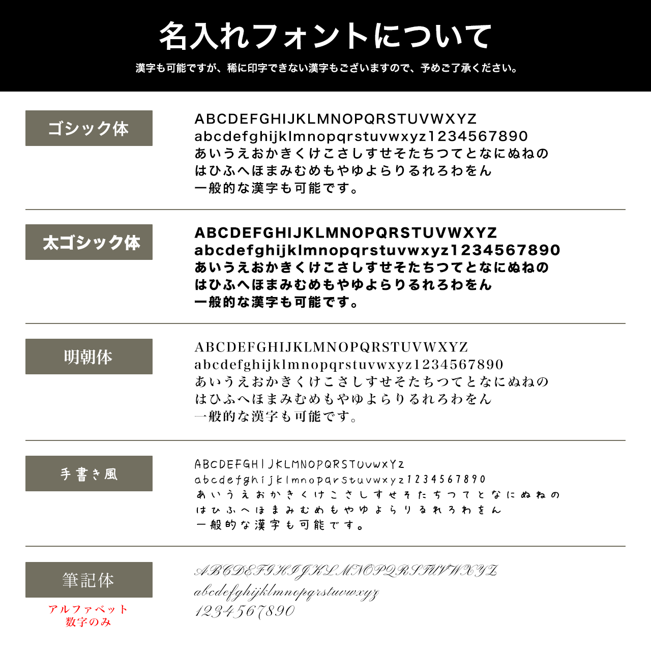 ・フォントは4種類からお選びいただけます。