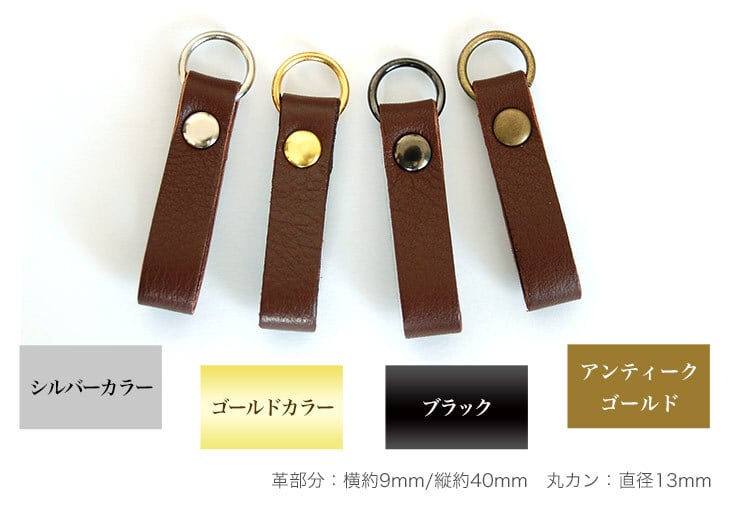 ●サイズ:サイズ:革部分:横約9mm/縦約40mm 丸カン:直径13mm